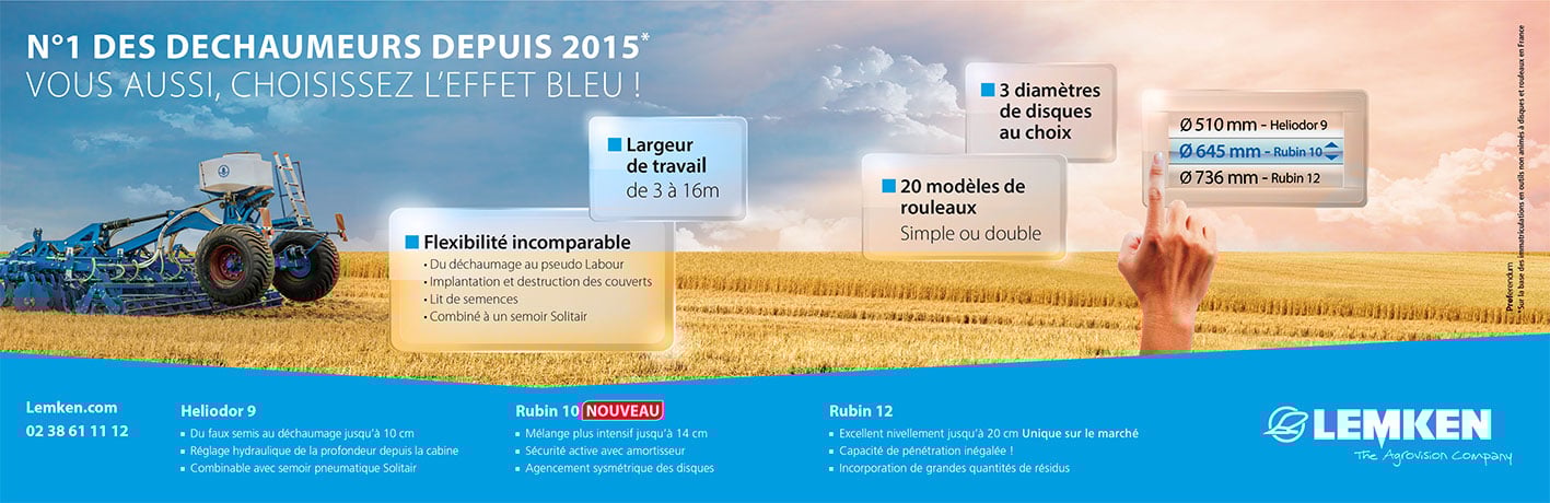 A l'occasion d'un nouveau modèle prometteur, LEMKEN FRANCE a demandé à Preferendum de retravailler sur une suite de campagne pour sa gamme de déchaumeurs.